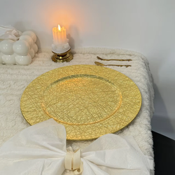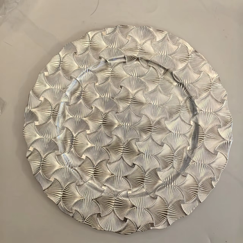Nueva llegada Placa de plástico Chrage de 13 pulgadas con borde hueco Placa de carga de plata dorada Plástico para eventos de boda