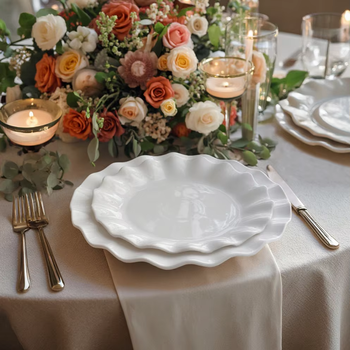 2025 nuovo arrivo Set di piatti di glassa bianca di forma irregolare Set di piatti decorativi increspati in ceramica per eventi nuziali